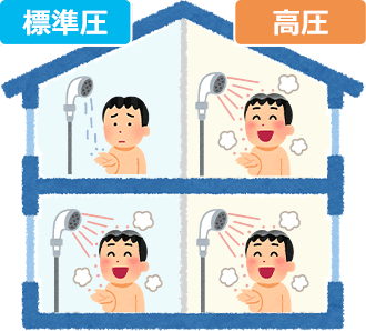 また、浴室が一階であっても、勢いの強いシャワーがお好みの場合は高圧タイプをおすすめいたします。