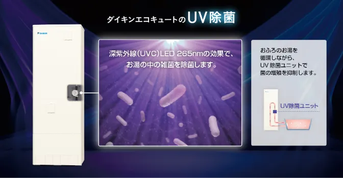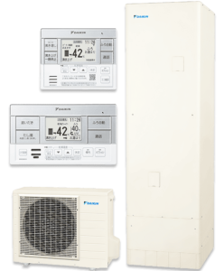 お好みに合わせて湯温を選べる「温浴タイム」や、豊富な流量で同時に使える「ツイン給湯」が嬉しい、フルオートタイプのエコキュート