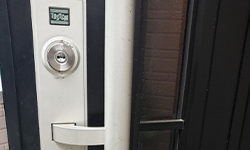 お客様よりご了承頂けましたので、シリンダー錠から電子錠への交換作業を開始しました。