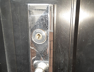 玄関には鍵が上下に付いており、下側の鍵は数年前からまったく回らず、上の鍵もついに回らなくなったとのことでした。