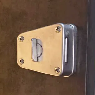 新しい錠前は形状が異なることから、金属の板を使い元の切り欠き穴や錠前の跡をカバーして仕上げました。