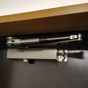 扉がきれいになったら新しいドアクローザーを取り付けて完了です。
