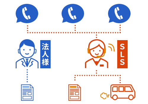 SLSでは、さまざまな業種・業務に対応する法人様向けコールセンター代行サービスを提供しています。企業様の業務内容に応じて、電話受付、各種ご案内、情報整理などを当社スタッフが代行いたします。